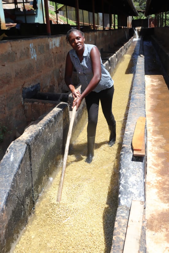 Getragen wird die Factory von der Gakundu Farmer’s Cooperative Society mit Sitz in Ngandori West, Kairuri. In den Kaffeegärten der Mitglieder zeigt sich ein klares Bild: Rund 60 % SL-28, 35 % Ruiru 11 und 5 % Batian, typisch Kenia, typisch Gakundu.